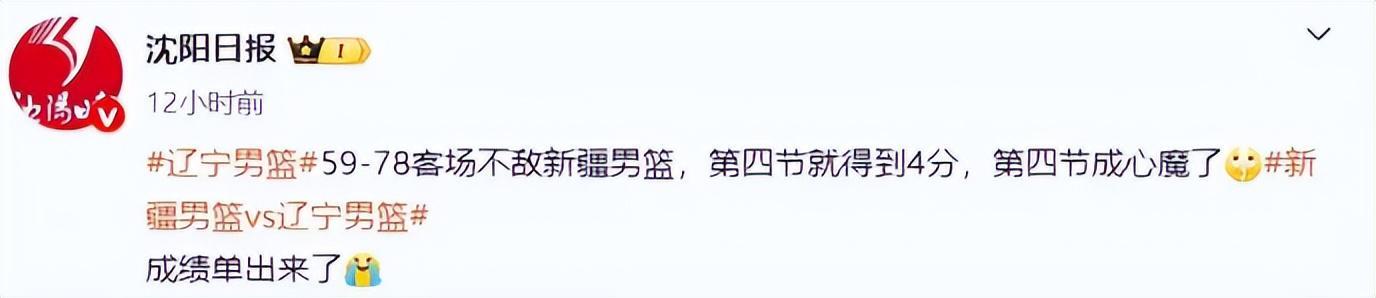 CBA常规赛第19轮客场不敌新疆后,辽宁男篮以8胜11负跌至积分榜第13位,彻底无缘季后赛区边缘。