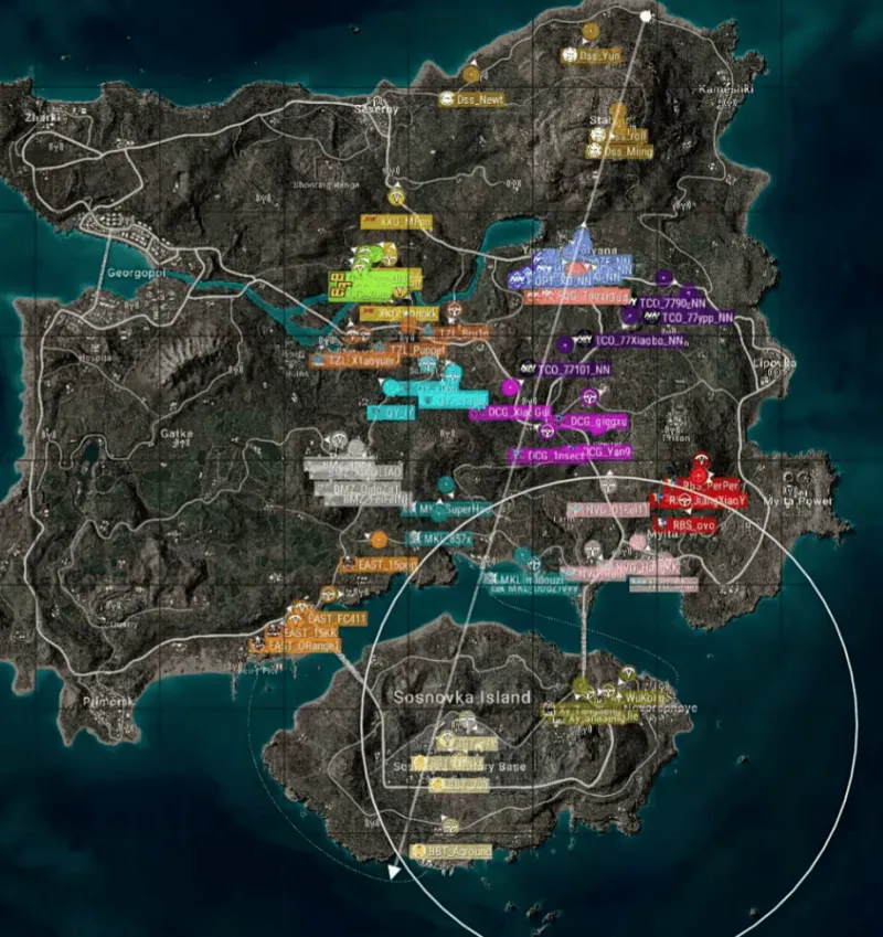 本局决赛圈位于北侧山顶附近。