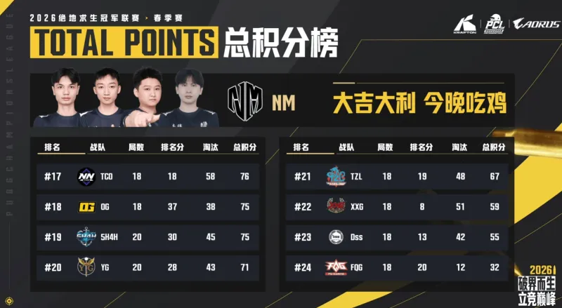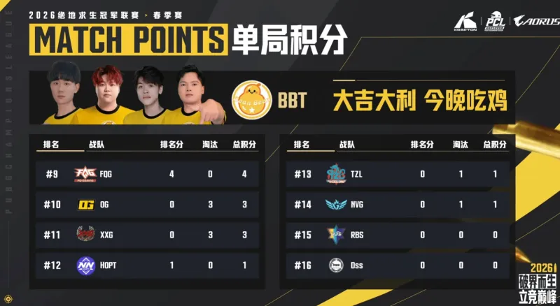 前四队伍:BBT QY FQG OG